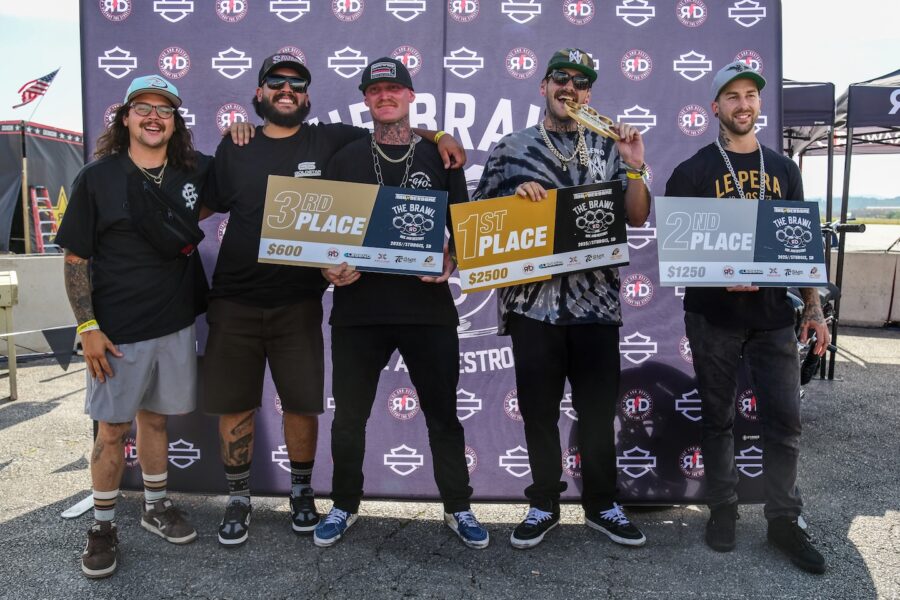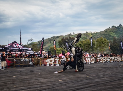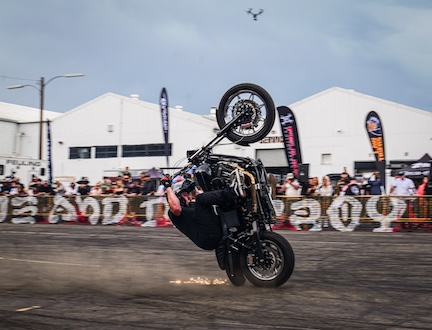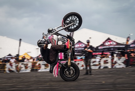 The Ride and Destroy’s “The Brawl” stunt contest featuring world-class V-twin Harley-Davidson riders and industry icon/judge appearances.