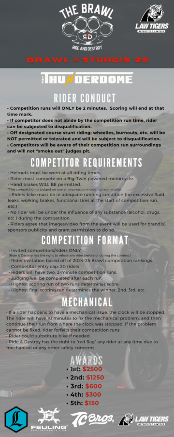 Founded in 2017, The “The Brawl” is a first of its kind, V-Twin specific, motorcycle stunt contest catering to the massive movement of Harley-Davidson stunt riding. The invite-only event caters to high-talented stunt riders who recently have been the driving force in the increasingly popular V-Twin motorcycle stunting demographic.